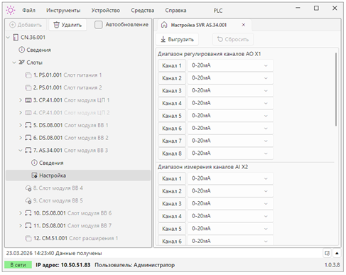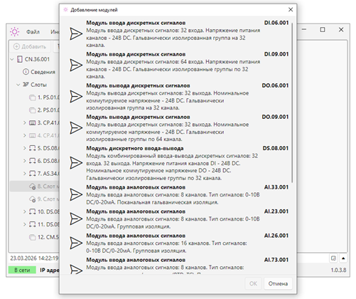 Конфигурирование модулей ввода/вывода ПЛК