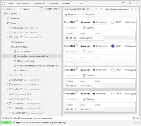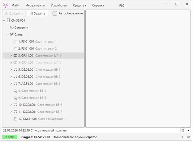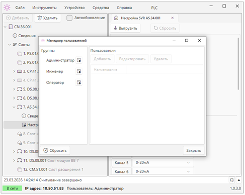 Конфигурирование крейтов ПЛК